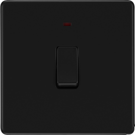 BG NFB31 Nexus Metal Matt Black 1 Gang 20A Double Pole Neon Switch