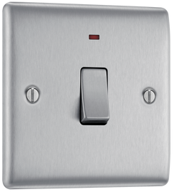 Double Pole Switch 20A - Brushed Steel with Neon Indicator