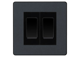 Matt Grey Evolve 2 Gang 20A 16AX 2 Way Light Switch - Black Insert