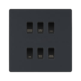 BG Evolve Matt Grey Custom Appliance Grid Switch 6 Gang Screwless