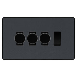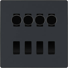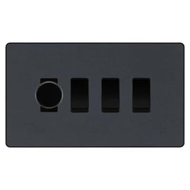 BG Evolve Matt Grey 4 Gang Custom Grid Switch 3x LED Dimmer 1x 2 Way Switch