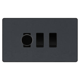 BG Evolve Matt Grey 2 Gang Custom Switch 1x 2 Way 1x Secondary Touch Dimmer