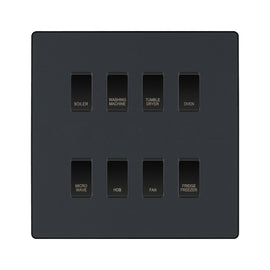 BG Evolve Matt Grey Custom Appliance Grid Switch 8 Gang Screwless