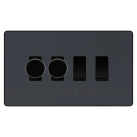 BG Evolve Matt Grey 2 Gang Custom Switch 1x 2 Way 1x Master Touch Dimmer