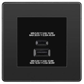 BG Evolve Black Chrome 45W USB Wall Socket Euro Module USB-A & C - Black Insert