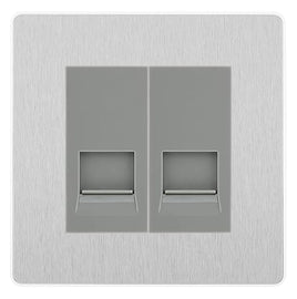 BG Evolve Brushed Steel Double RJ11 Telephone Socket PCDBSRJ112 - Grey Insert