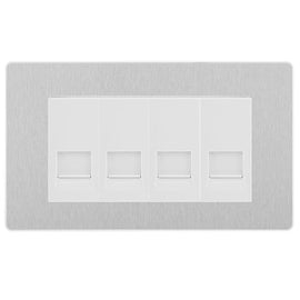 BG Evolve Brushed Steel 4 Gang RJ45 Cat6 Data Socket White Inserts