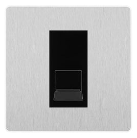 RJ11 Telephone Outlet: Includes RJ11 screw-terminal module with brushed steel Euro faceplate.