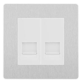 BG Evolve Brushed Steel Double RJ11 Telephone Socket PCDBSRJ112 - White Insert
