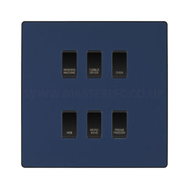 BG Evolve Matt Blue Custom Appliance Grid Switch 6 Gang Screwless
