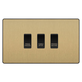 BG Evolve Satin Brass Custom Appliance Grid Switch 3 Gang Screwless