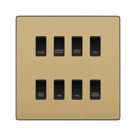 BG Evolve Satin Brass Custom Appliance Grid Switch 8 Gang Screwless