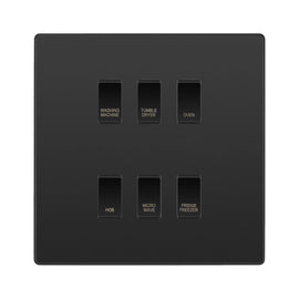 BG Evolve Matt Black Custom Appliance Grid Switch 6 Gang Screwless