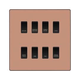 BG Evolve Polished Copper Custom Appliance Grid Switch 8 Gang Screwless