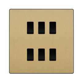 BG Evolve Satin Brass 6 Gang Custom Grid Light Switch E V O L V E A new generation of decorative modern wiring devices, available in the latest colours and finishes. The range benefits aesthetically from having no visible pl...