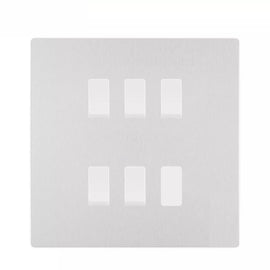BG Evolve Brushed Steel 6-Gang Intermediate Light Switch | Screwless Design + Back Box Upgrade your space with the BG Evolve Brushed Steel 6 Gang Intermediate Custom Grid Light Switch, a part of BG's innovative Evolve series....