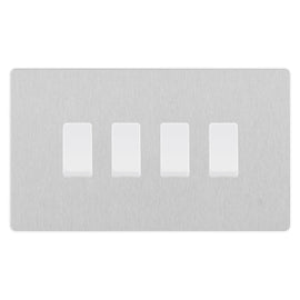 BG Evolve Brushed Steel 4 Gang Custom Grid Light Switch Double Format E V O L V E A new generation of decorative modern wiring devices, available in the latest colours and finishes. The range benefits aesthetically from havi...