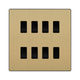 BG Evolve Satin Brass 8 Gang Custom Grid Light Switch E V O L V E A new generation of decorative modern wiring devices, available in the latest colours and finishes. The range benefits aesthetically from having no visible pl...