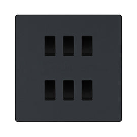 BG Evolve Matt Black 6 Gang Custom Grid Light Switch E V O L V E A new generation of decorative modern wiring devices, available in the latest colours and finishes. The range benefits aesthetically from having no visible pla...