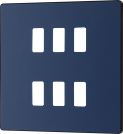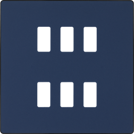 Evolve Grid Matt Blue 6 Module Square Front Plate - Black Trim