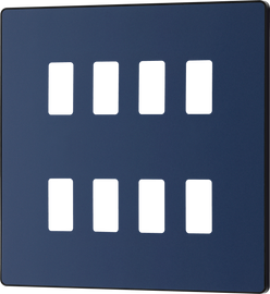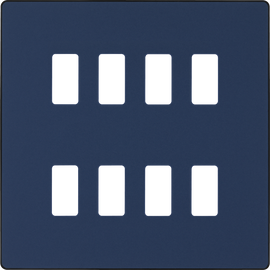 Evolve Grid Matt Blue 8 Module Square Front Plate - Black Trim
