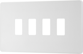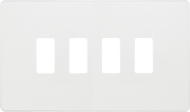 Evolve Grid Pearlescent White 4 Module Rectangular Front Plate - White Trim About Product: Pearlescent white finish matches the standard Evolve range Flat profile with sleek, rounded corners Easy clip on/off allows for si...
