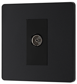 Matt Black Evolve Co-Axial Socket Outlet - Black Insert About Product: Screw terminals Easy to install, supplied with fixing screws and installation instructions Used for TV or FM coaxial aerial connection Screwless fron...