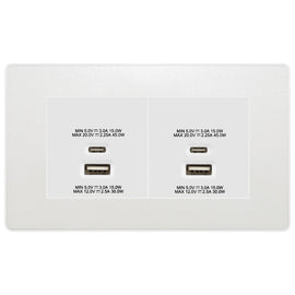 BG Evolve Pearlescent White 4G Faceplate with 45W USB A+C Charger Modules