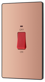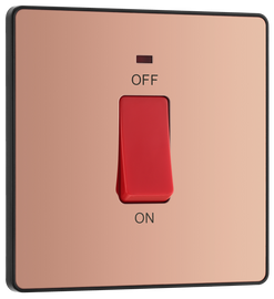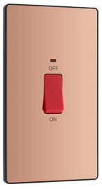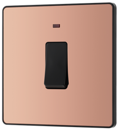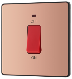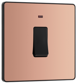 Polished Copper Evolve 45A 2 Pole Large Plate LED Switch - Black Insert