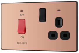 Polished Copper Evolve 45A 2 Pole Cooker Control Unit 13A Switched Socket - Black Insert