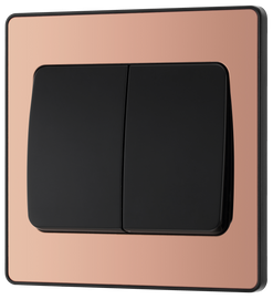 BG Electrical Evolve Polished Copper 2-Gang Light Switch 1x 2-Way + 1x Intermediate – Black Inserts