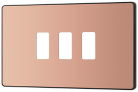 Evolve Grid Polished Copper 3 Module Rectangular Front Plate - Black Trim