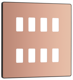 Evolve Grid Polished Copper 8 Module Square Front Plate - Black Trim
