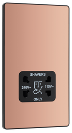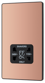 Polished Copper Evolve 115-240V Dual Voltage Shaver Socket - Black Insert