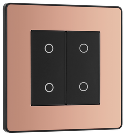 Polished Copper Evolve 2 Gang 200W Intelligent Trailing Edge Dimmer Switch - Black Insert