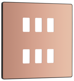 Evolve Grid Polished Copper 6 Module Square Front Plate - Black Trim