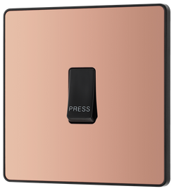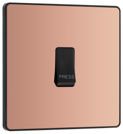 Polished Copper Evolve 10AX 1 Way Press Switch - Black Insert