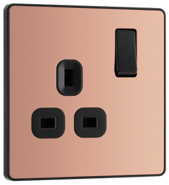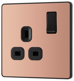 Polished Copper Evolve 1 Gang 13A Switched Socket Outlet - Black Insert