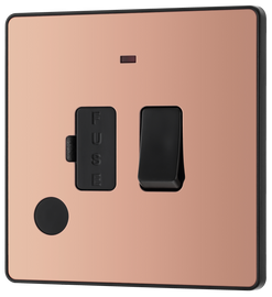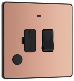 Polished Copper Evolve 13A Flex Outlet Neon Switched Fused Spur Unit - Black Insert