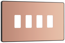 Evolve Grid Polished Copper 4 Module Rectangular Front Plate - Black Trim