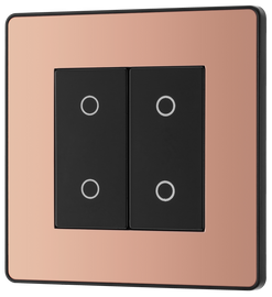 BG Evolve Polished Copper 4-Gang Light Switch 2x 2-Way + 2x Intermediate – Black Inserts