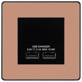 BG Evolve Polished Copper Dual USB Charger 3.1A Output Socket - Black Insert