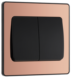 Polished Copper Evolve 2 Gang 20A 16AX 2 Way Light Switch - Black Insert