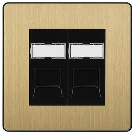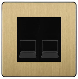 BG Evolve Satin Brass Double RJ11 Telephone Socket PCDCPRJ112 - Black Insert