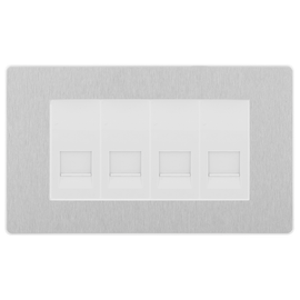 BG Evolve Brushed Steel 4 Gang Master Telephone Socket, Screw Terminal - White Insert