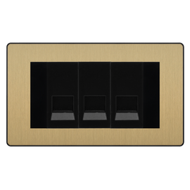 BG Evolve Satin Brass 3 Gang Master Telephone Socket, Screw Terminal - Black Insert