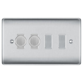 BG Brushed Steel 4 Gang Switch 2x Trailing Edge LED Dimmer 2x 2 Way Custom Grid Please note that this switch will come in a grid format. You will be sent the following parts all supplied by BG; RFR34 - 1x 3 & 4 Gang Gr...