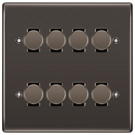 BG Nexus Black Nickel 8 Gang Switch 4x Trailing Edge LED Dimmer 4x Intermediate Custom Grid Switch