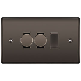BG Black Nickel 2 Gang Switch 1x Trailing Edge LED Dimmer 1x 2 Way Custom Grid