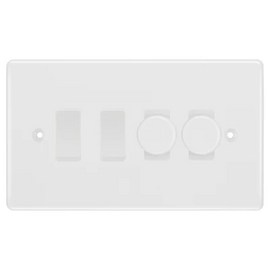 BG White Moulded 4 Gang Light Switch 3x Trailing Edge LED Dimmer 1x 2 Way Custom Switch Please note that this switch will come in a grid format. You will be sent the following parts all supplied by BG; RFR34 - 1x 3 & 4...